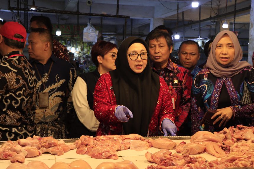 TANGERANG – Wakil Bupati (Wabup) Tangerang, Intan Nurul Hikmah bersama Dinas Kesehatan dan Tim Badan Pengawasan Obat dan Makanan (BPOM) memantau ketersediaan dan stabilitas harga sembako di Pasar Gudang Tigaraksa, Kamis 23 Oktober 2025
